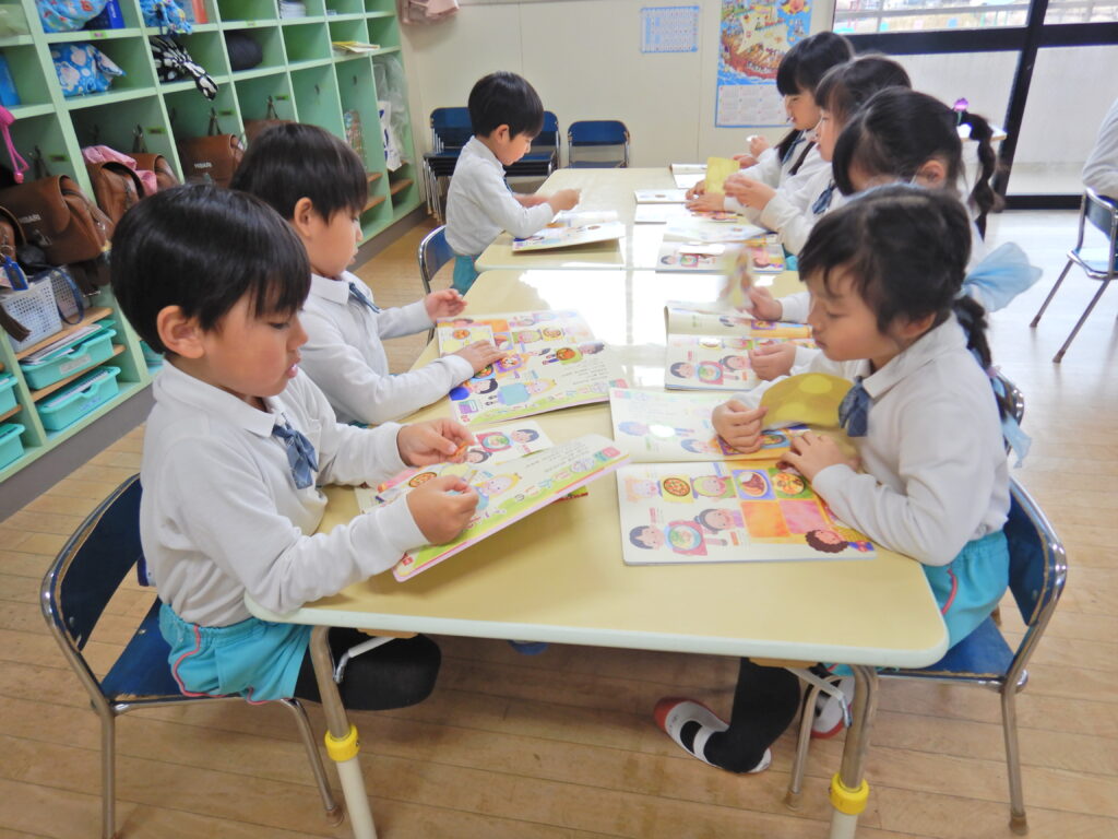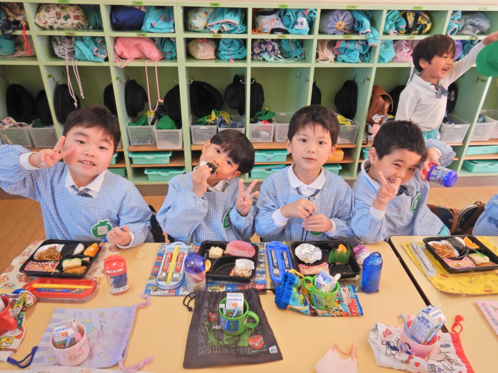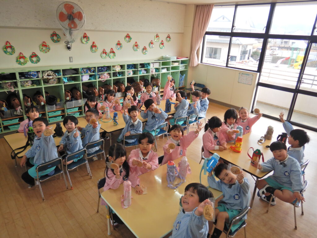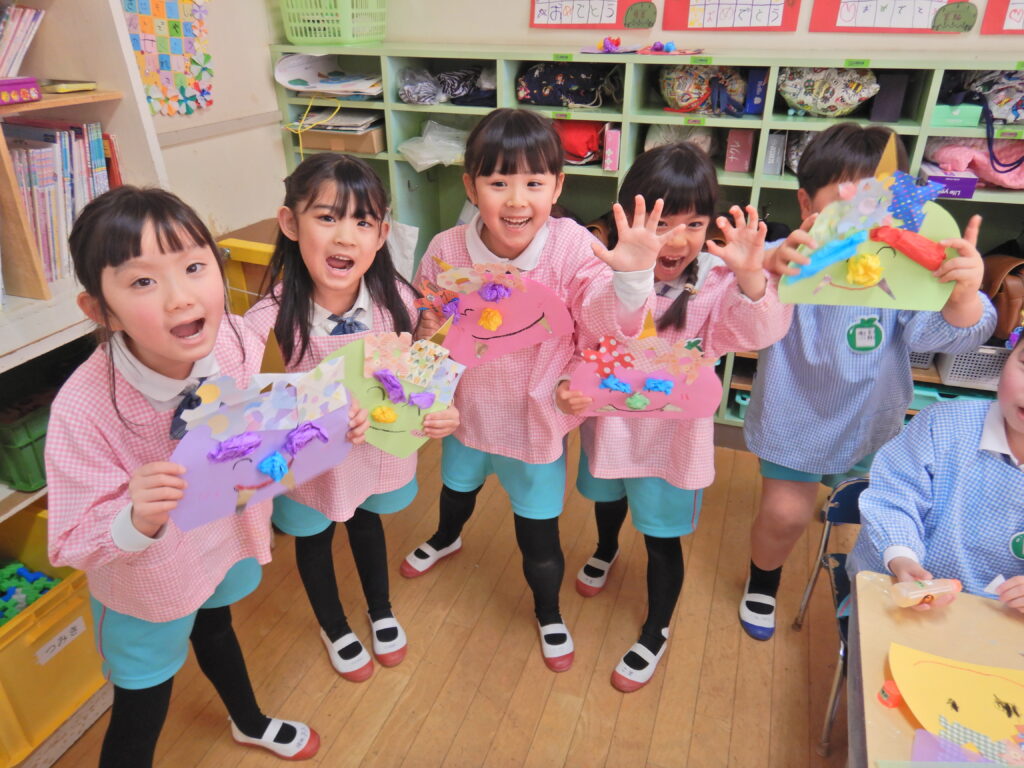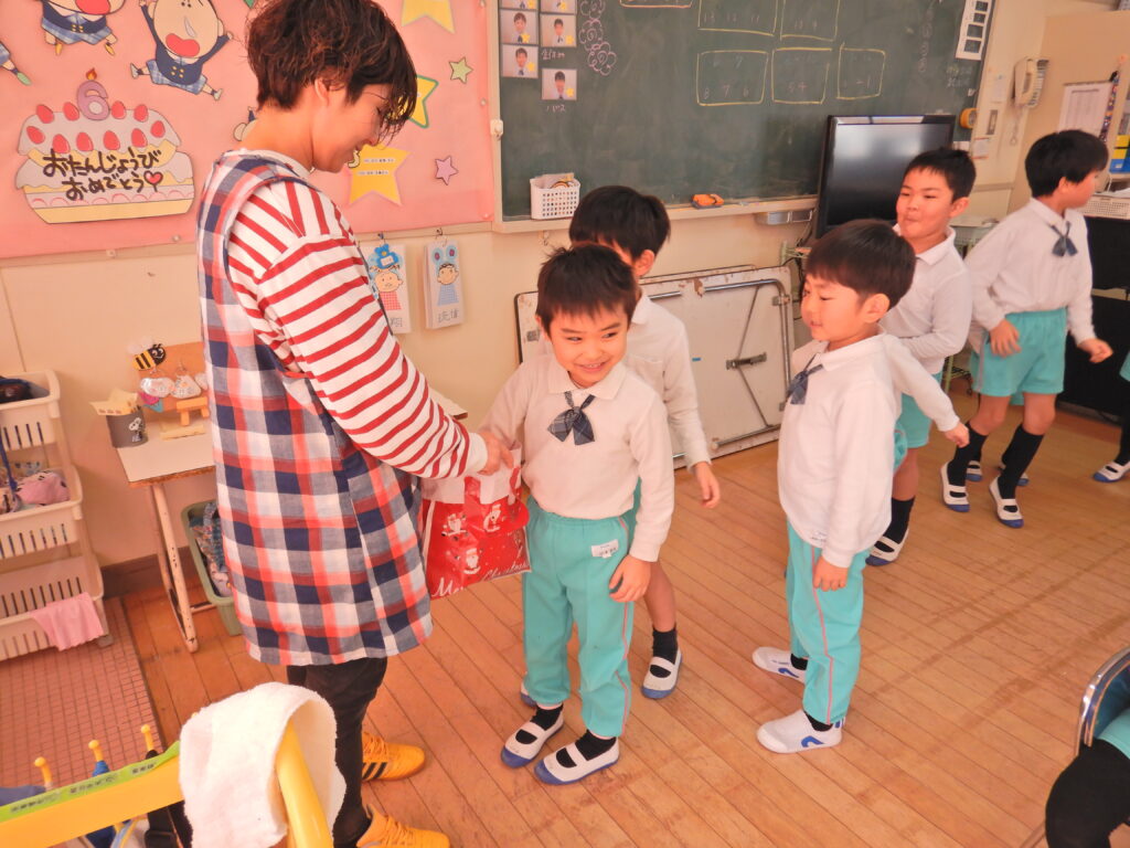 年長組 はと組 みんなでゴロゴロ♪ 交流会へ行ってきまーす! 鬼のお面作り シール遊び うぐいす組 元気に言えたよ! お店屋さんの看板作り 鬼のお面完成!! みんなで給食 つばめ組 何が出るかな~ 年内最後の大笑い!! 向陽小学校交流会★ 誕生日おめでとう!!