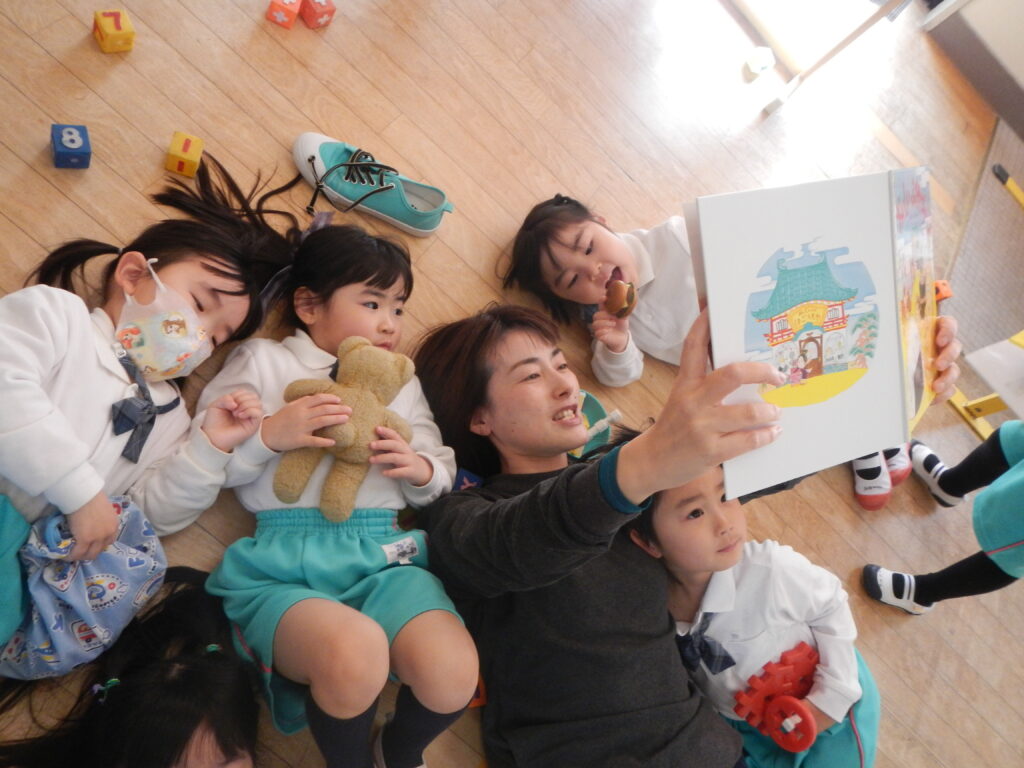 横になって絵本の時間